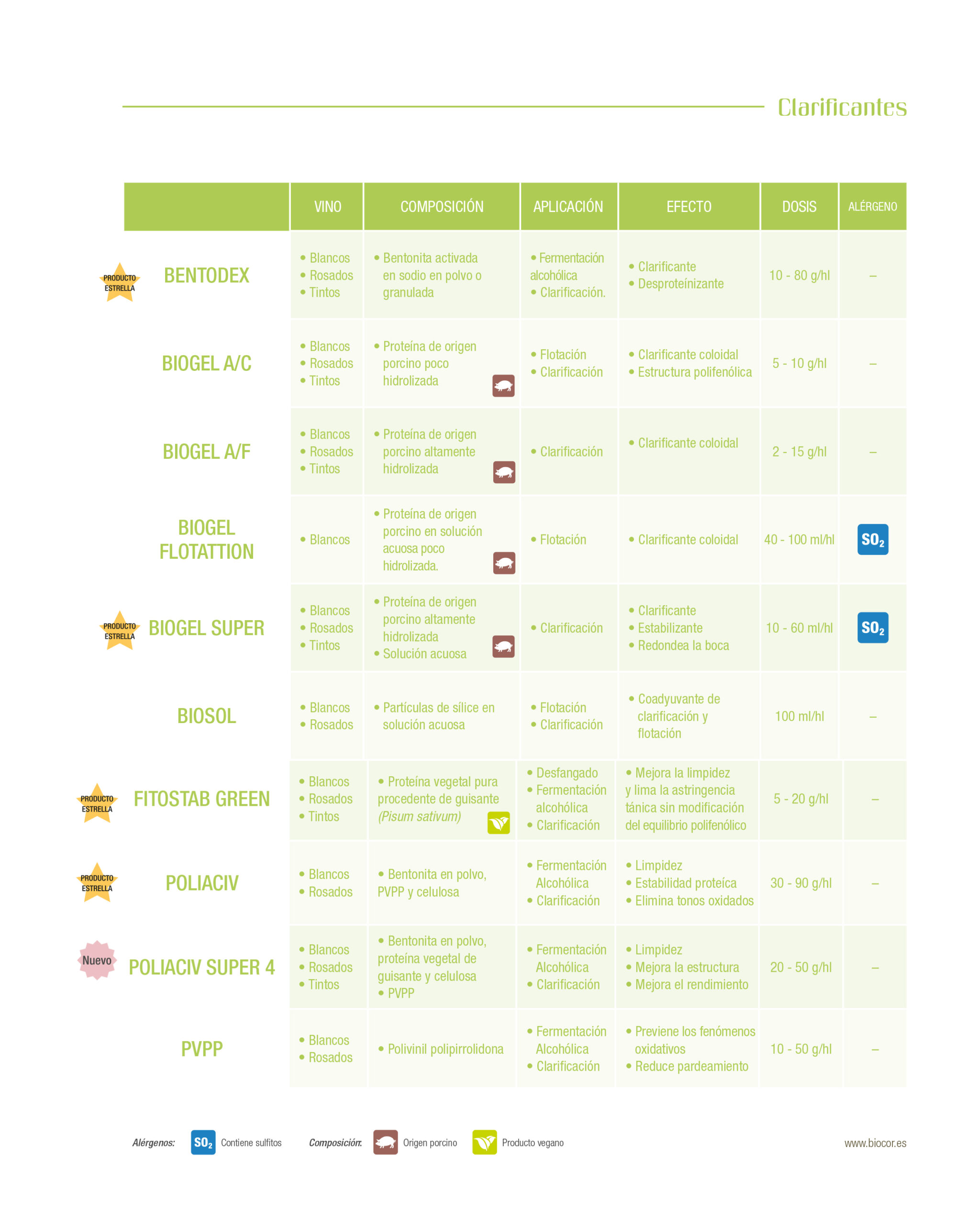 Clarificante preventivo frente a fenómenos oxidativos en mostos y vinos blancos y rosados.